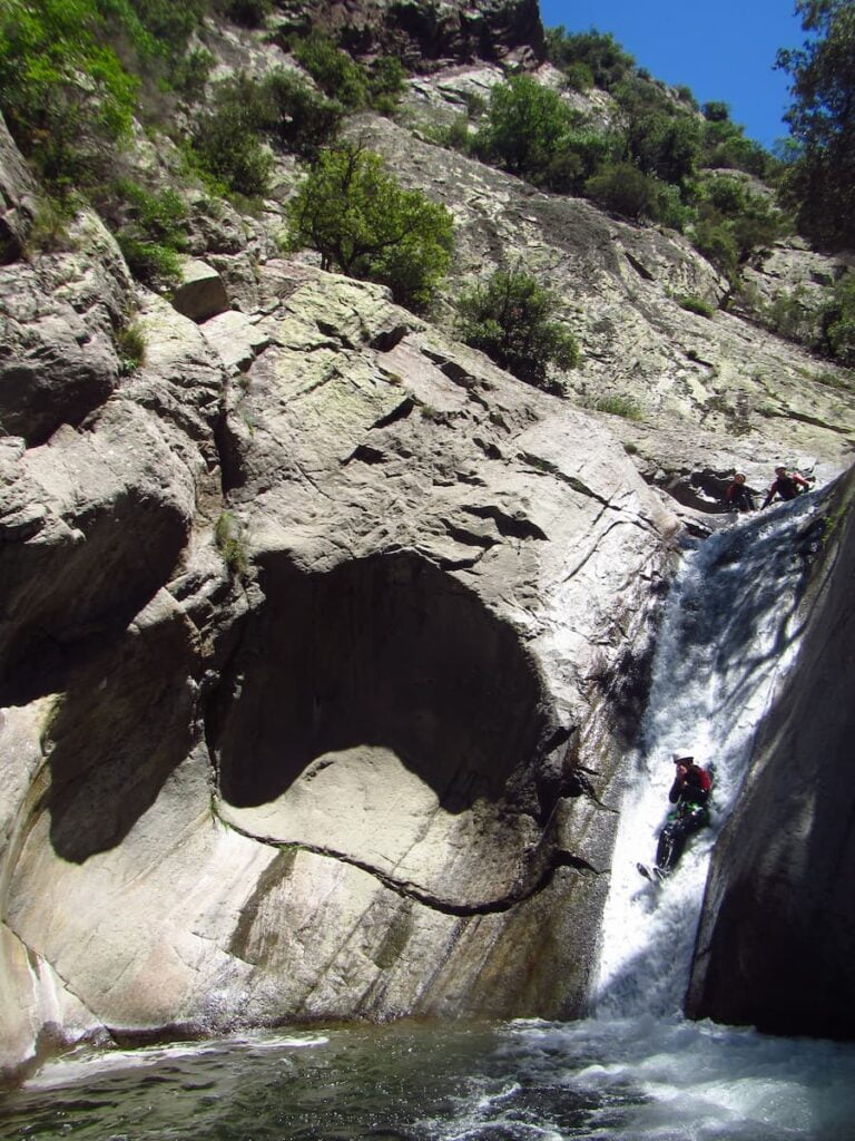 Dernière ligne droite, un grand rappel de 15 mètres, deux jolis toboggans, deux sauts et nous voilà sorties des célèbres gorge du Llech.